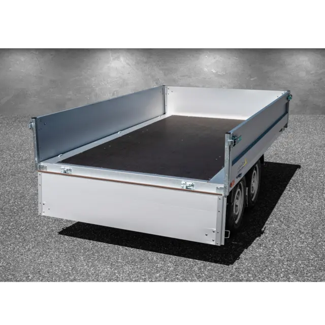 Design med v-drag, aluminiumskarmer 350 mm, 13 "hjul, 13-polet kontakt, gulvet er laget av vanntett kryssfiner med en tykkelse på 15 mm. Løse hjørnestolper, alle karmer kan felles ned eller fjernes.
