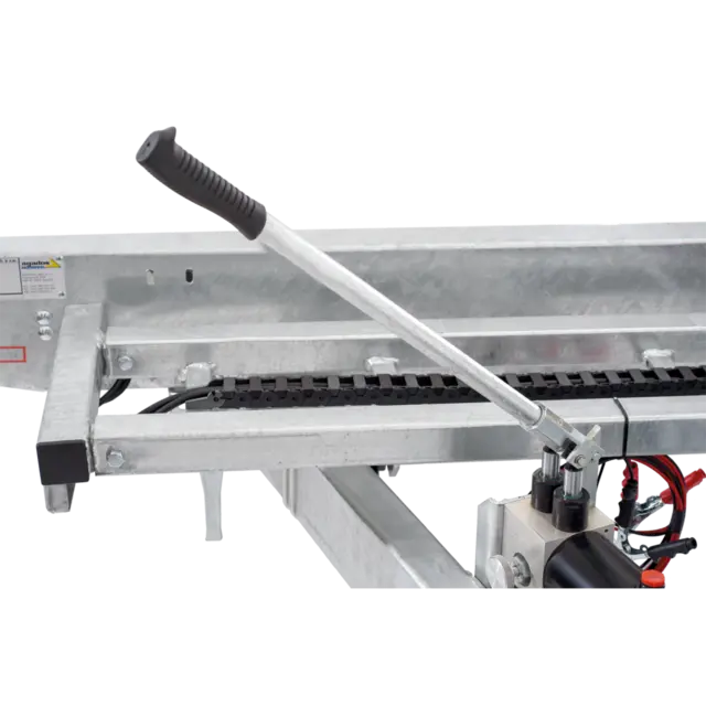Som standard er tilhengeren utstyrt med manuell hydraulisk tipp, 12 stk surrekroker, kraftig atomatisk nesehjul og Agados Smart LED bakbelysning.
