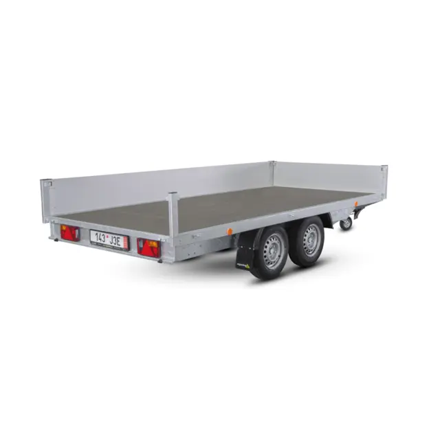 Robust varmgalvanisert bunnramme, tverrbjelker på understellet, sklisikre kryssfinergulv, anodiserte helt avtakbare ALU-sidekarmer, forankringsøyler i "M"-sideprofiler, plastskjermer, automatisk støttehjul i midten på V-draget, delt kryssfinergulvbord, 13-polet plugg, ryggelys og Agados Smart LED-belysning 12V.